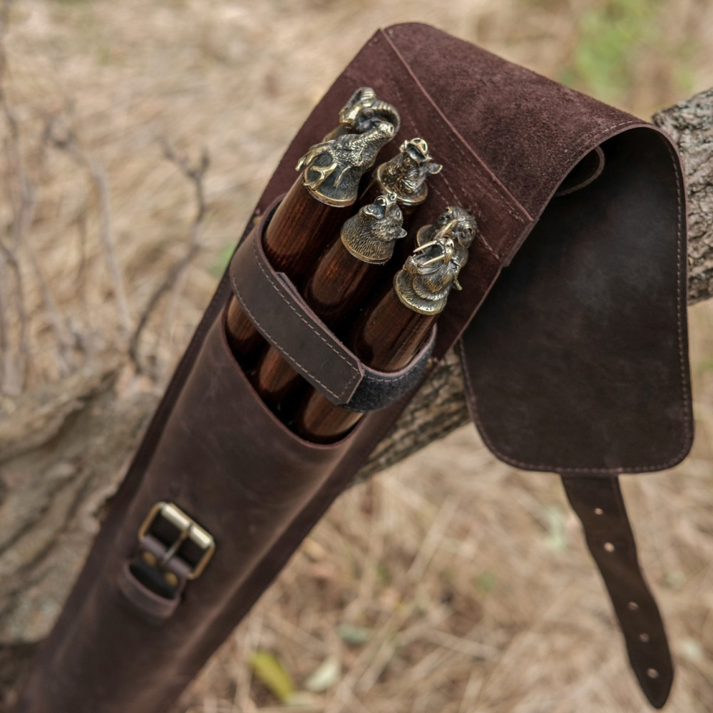 Шампура складаються у міцний чохол із натуральної шкіри.